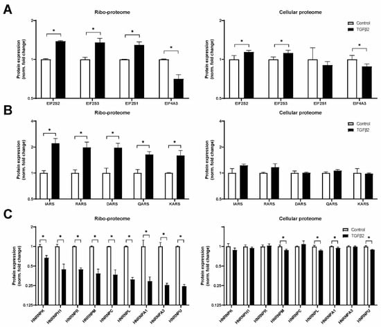 | Ribosomal proteome | 382 | 66 (30↑, 36↓) | 38 (8↑, 30↓) |