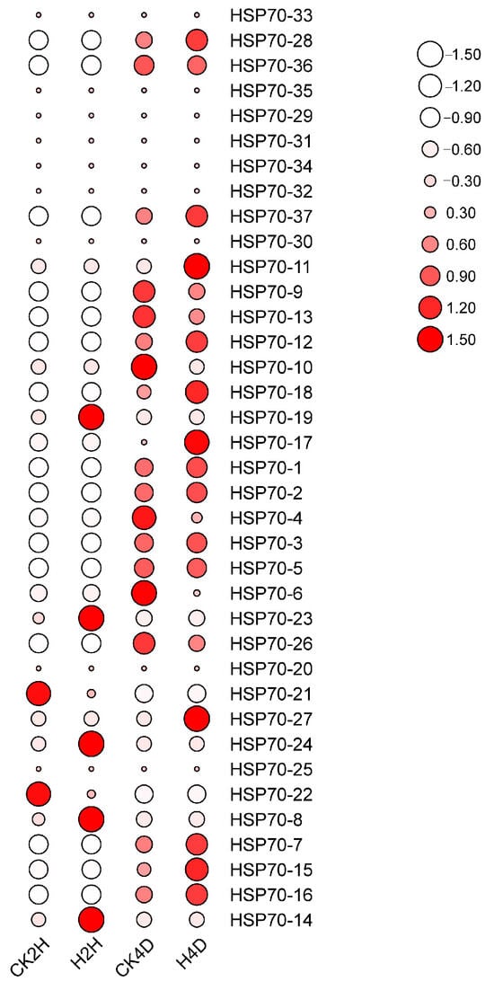Expression of LsHSP70 at high temperature. CK, room temperature treatment; H, high-temperature treatment; 2H, treatment two hours; 4D, treatment four days.