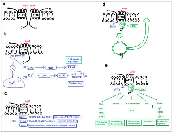 - Toth, A.; Turu, G.; Hunyady, L.; Balla, A. Novel mechanisms of G-protein coupled receptors functions: AT1 angiotensin receptor acts as a signaling hub and focal point of receptor cross-talk. Best Pract. Red. Clin. Endocrinol. Metabol. 2018, 32, 69–82. [Google Scholar] [CrossRef] [PubMed]