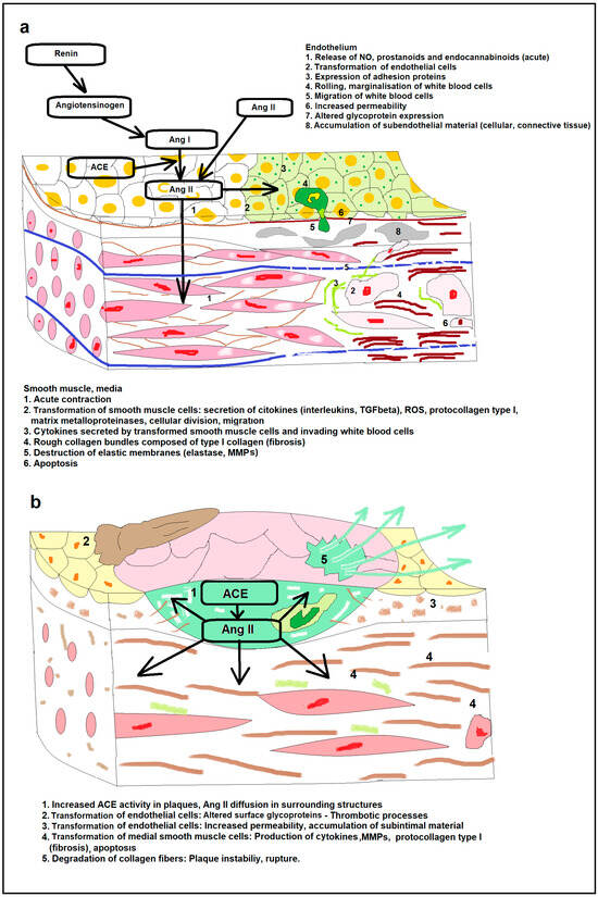 - Diet, F.; Pratt, R.E.; Berry, G.J.; Momose, N.; Gibbons, G.H.; Dzau, V.J. Increased accumulation of tissue ACE in human atherosclerotic coronary artery disease. Circulation 1996, 94, 2756–2767. [Google Scholar] [CrossRef] [PubMed]