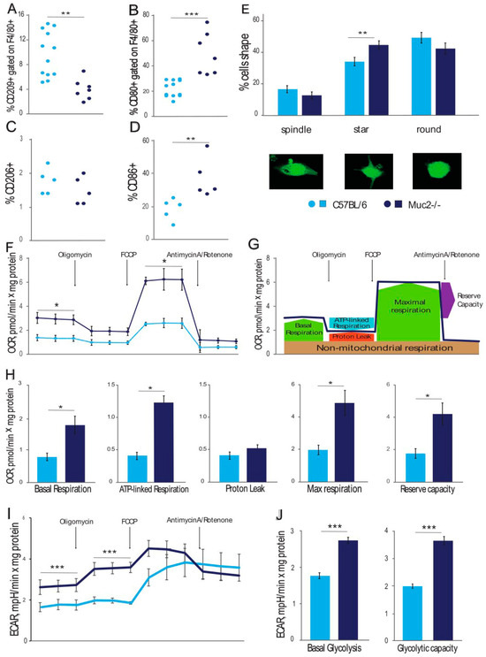 3.2. Metabolic Reprogramming in the Muc2−/− Peritoneal Macrophages