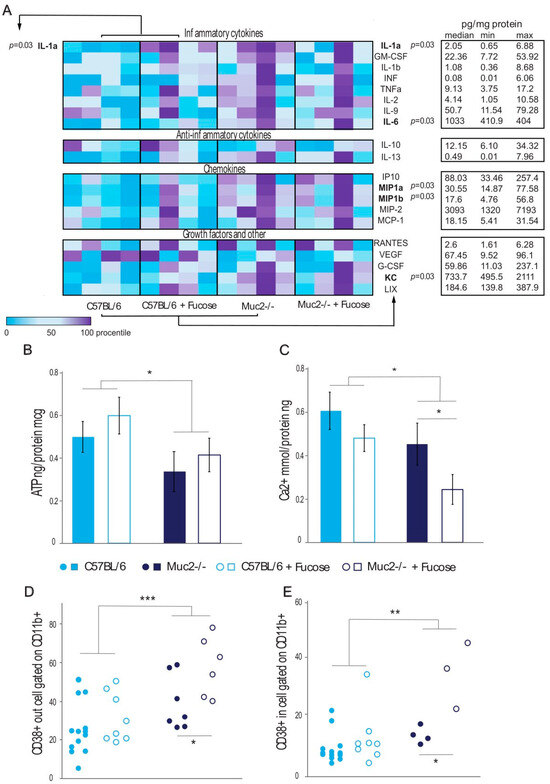 Arzhanova EL, Makusheva Y, Pershina EG, Medvedeva SS, Litvinova EA. Changes in the Phenotype and Metabolism of Peritoneal Macrophages in Mucin-2 Knockout Mice and Partial Restoration of Their Functions In Vitro After L-Fucose Treatment. International Journal of Molecular Sciences. 2025; 26(1):13. https://doi.org/10.3390/ijms26010013