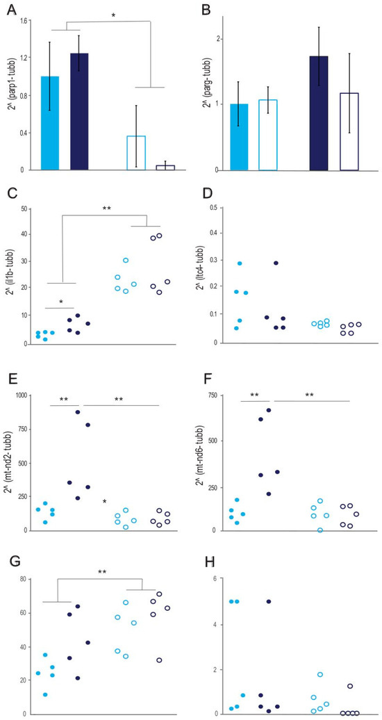- Uchiumi, F.; Watanabe, T.; Ohta, R.; Abe, H.; Tanuma, S.-I. PARP1 Gene Expression Is Downregulated by Knockdown of PARG Gene. Oncol. Rep. 2013, 29, 1683–1688. [Google Scholar] [CrossRef][Green Version]