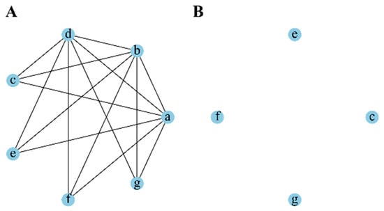 For removing redundant features, we defined a redundance threshold (Rth) that is a hyperparameter. If the MAC between two features is equal to or greater than Rth, then one of them is a redundant feature. As shown in Figure 9, we revealed the association between features before and after removing redundant features in the form of a schematic diagram. This is an undirected graph, where a node represents a feature, and different letters in the node represent different features. Before removing redundant features, there is an edge between two nodes when the MAC between them is equal to or greater than Rth, as shown in Figure 9A. After removing redundant features, the remaining features are shown in Figure 9B.