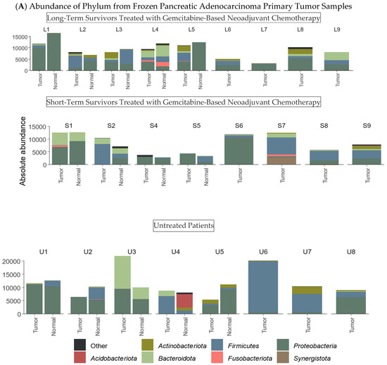 However, interpreting these findings has been challenging due to the inherent limitations of microbiome studies, including sample contamination during surgical extraction, storage-related DNA degradation, and false-positive microbial detection from environmental sources. Previous clinical studies in human pancreatic ductal adenocarcinoma (PDAC) have produced conflicting results regarding the abundance and oncologic significance of the tumor microbiome, adjacent pancreatic tissue, and precancerous lesions [7,9,10,11]. This study aims to address these limitations by applying stringent contamination controls, including negative controls, bioinformatic decontamination using SCRuB, and comprehensive statistical analyses to evaluate potential associations between microbial populations and chemotherapy response in PDAC.
