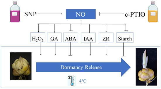 28. Niu, L.; Li, B.; Liao, W.; Zhu, Y.; Wang, M.; Jin, X.; Xu, Q. Effect of nitric oxide on dormancy release in bulbs of Oriental lily (Lilium orientalis) ‘Siberia’. J. Hortic. Sci. Biotechnol. 2015, 90, 594–598. [Google Scholar] [CrossRef]