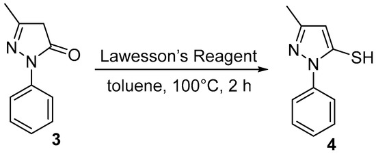 Synthesis of 3-methyl-1-phenyl-1H-pyrazole-5-thiol (4) [19].