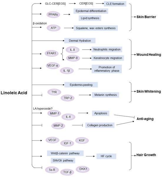 Wang, X.; Jia, Y.; He, H. The Role of Linoleic Acid in Skin and Hair Health: A Review. Int. J. Mol. Sci. 2025, 26, 246. https://doi.org/10.3390/ijms26010246