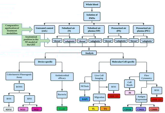 A key aspect of this research is the use and comparison of two distinct modalities of CAP generations to find out whether the effects on PMNs in the URT can be modulated on a per device basis. This was achieved by analyzing various device-specific cellular and molecular biological parameters (e.g., RONS generation, antibacterial efficacy, migration, NETosis, intracellular ROS production, surface antigen expression, and cell death). For this approach, the PIC device already employed in the study by Karrer et al. 2024 was used [