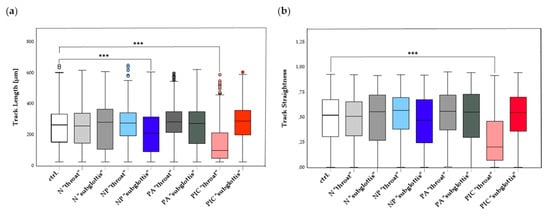 Using the “Spots Detection” function of the Imaris software, the tracks of all migrating cells were identified. Program-supported filters (estimated cell diameter, background subtraction, maximum distance, gap size) were applied to minimize interference from artifacts or other cell types. These tracks were then converted into multiple migration parameters by the software, including Track Length (TL) and Track Straightness (TS). TL represents the distance the PMNs have migrated, measured in micrometers (µm). TS is used to measure the linearity of a PMN’s migration path, and has no unit. A perfectly straight path, with no deviation from the direction towards the chemoattractant fMLP would yield a TS of 1. When TS approaches 0, it indicates increasing deviation and a less linear path. Cells with tracks shorter than 25 µm and migration times under 900 s were excluded from the analysis to prevent the inclusion of non-migrating cells or particles in the statistical data. Fluorescence images were used to detect ROS production (red fluorescence) and NETosis (blue fluorescence). PMNs distinguished from the background by displaying clear fluorescence at any point during the observation period were classified as ROS-producing or NETotic cells. This classification was further confirmed when the cells showed the characteristic behavior described in previous studies [