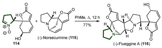 - Ma, N.; Yao, Y.; Zhao, B.-X.; Wang, Y.; Ye, W.-C.; Jiang, S. Total Synthesis of Securinega Alkaloids (−)-Norsecurinine, (−)-Niruroidine and (−)-Flueggine A. Chem. Commun. 2014, 50, 9284–9287. [Google Scholar] [CrossRef] [PubMed]