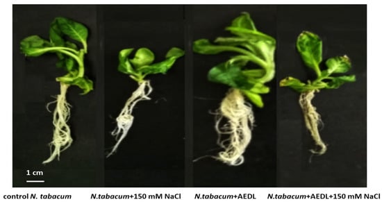 - Fedoreyeva, L.I.; Baranova, E.N.; Chaban, I.A.; Dilovarova, T.A.; Vanyushin, B.F.; Kononenko, N.V. Elongating Effect of the Peptide AEDL on the Root of Nicotiana tabacum under Salinity. Plants 2022, 11, 1352. [Google Scholar] [CrossRef]