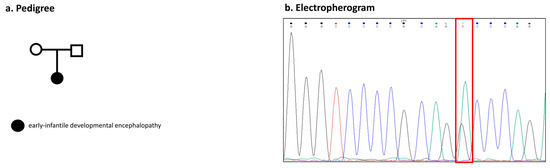 The other unrelated proband, with an unremarkable familiar history of epilepsy, presented an early-infantile developmental encephalopathy with focal and generalized seizures associated with intellectual disability (Figure 3a).