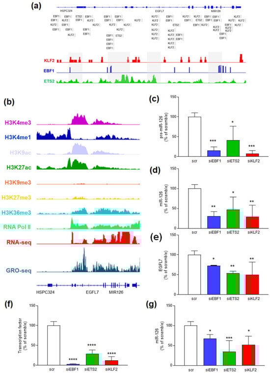 2.3. Regulation of EGFL7/miR-126 Transcription by EBF1, ETS2, and KLF2