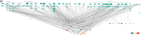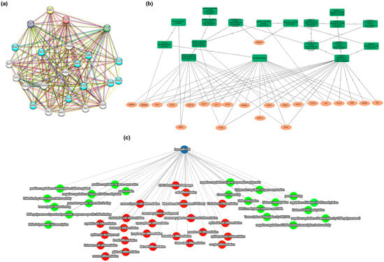 - Szklarczyk, D.; Kirsch, R.; Koutrouli, M.; Nastou, K.; Mehryary, F.; Hachilif, R.; Gable, A.L.; Fang, T.; Doncheva, N.T.; Pyysalo, S.; et al. The STRING database in 2023: Protein–protein association networks and functional enrichment analyses for any sequenced genome of interest. Nucleic Acids Res. 2023, 51, D638–D646. [Google Scholar] [CrossRef]