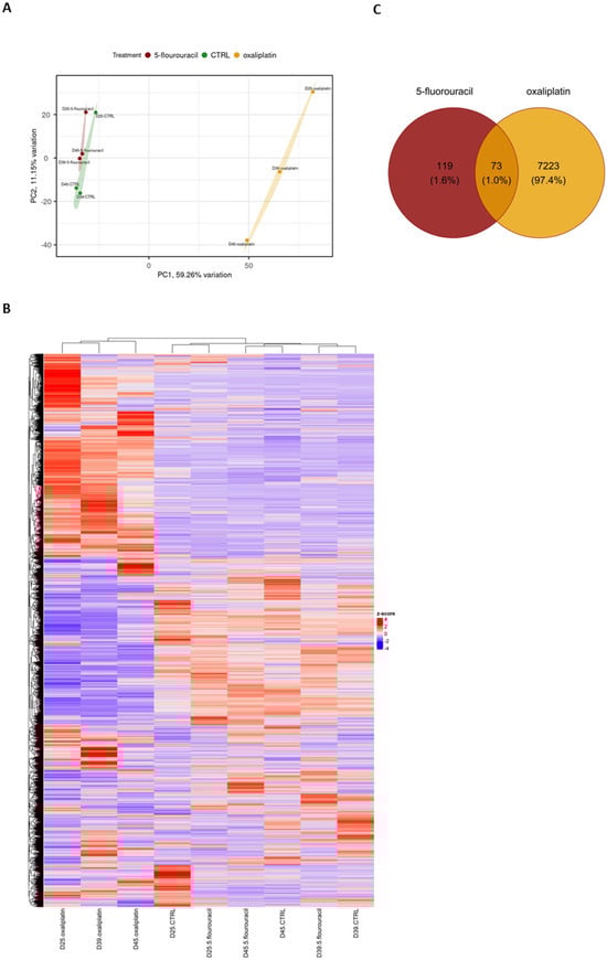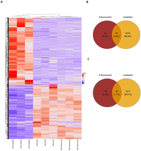 2.2. OXP Treatment-Induced Pronounced Gene Expression Changes Compared with 5-FU Treatment and Untreated Controls in ASCs