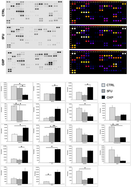 2.6. Protein Array Analysis of ASCs Supernatant Treated with OXP and 5-FU