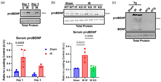 2.1. Serum proBDNF Is Increased Following IR Injury