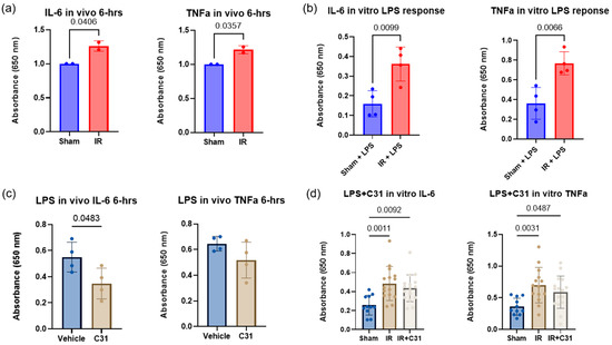 2.6. IR Injury Alters Innate Immune Response to LPS