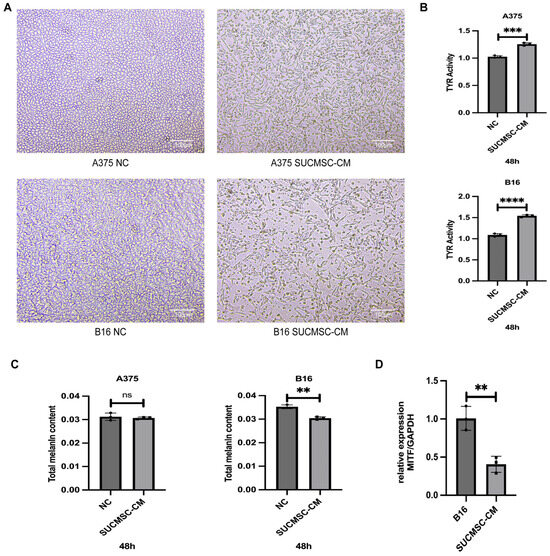2.1. SUCMSCs Affect Micromorphological Characteristics and Inhibit Melanin Synthesis