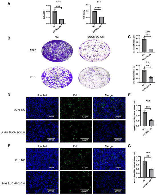 2.2. SUCMSCs Suppress Melanoma Cell Proliferation