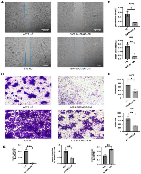 2.3. SUCMSCs Inhibit the Migration and Invasion of Melanoma Cells