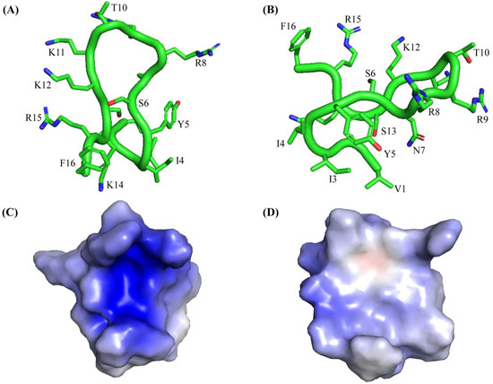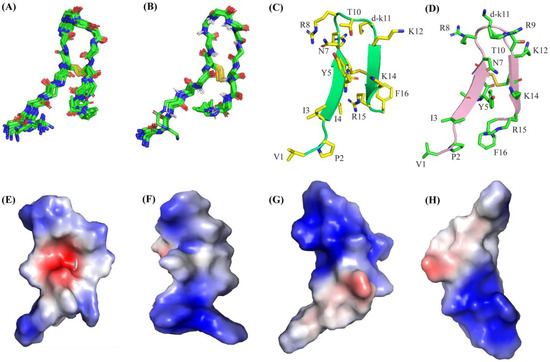 - Panteleev, P.V.; Bolosov, I.A.; Balandin, S.V.; Ovchinnikova, T.V. Structure and Biological Functions of β-Hairpin Antimicrobial Peptides. Acta Naturae 2015, 7, 37–47. [Google Scholar] [CrossRef] [PubMed]