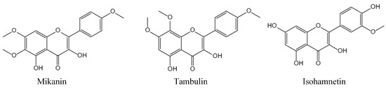 - Valesi, A.G.; Rodriguez, E.; Velde, G.V.; Mabry, T. Methylated Flavonols in Larrea Cuneifolia. Pergamon 1972, 11, 2821–2826. [Google Scholar] [CrossRef]