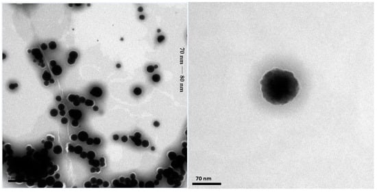 Generally, nanoparticles that showed a relative increase in droplet size when compared to the value obtained in the nanoparticle analyzer measurement (dynamic light diffusion/DLS) are justified by the wide difference conditions for TEM analysis, such as non-dilution and the need for drying, that cause modifications [,,].
