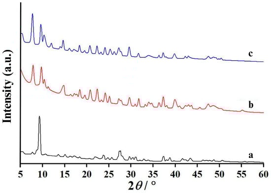 An X-ray diffractometer was used to investigate the crystallography of all the synthesized calcium compounds, and the resulting XRD patterns of CA and CL are displayed in Figure 3. The prepared CA sample, as demonstrated in Figure 3a, shows similar XRD patterns, pointing out the same crystal structure. After comparing to ICDD data of PDF # 010-0776, it could be concluded that CA was calcium acetate monohydrate (Ca(CH3COO)2·H2O) []. Klop et al. used the Patterson–Fourier method to investigate the crystal structure of Ca(CH3COO)2·H2O and have reported that the crystal structure of Ca(CH3COO)2·H2O composed of infinite multiple O-bridged double-stranded Ca chains, which were cross-linked by the H bonds []. Ca(CH3COO)2·H2O crystallizes in triclinic crystal system with the lattice parameters a = 6.751 Å, b = 11.077 Å, c = 11.783 Å, the lattice angles α = 116.50°, β = 92.41°, γ = 97.32°, the unit cell volume of 777.1 Å3, and a Z number of 4 (number of formula units in the unit cell). The diffraction pattern of CA obtained in this work is in good agreement with data reported by Musumeci et al. [], demonstrating that 10 mol/L acetic acid was successfully employed to prepare CA with the chemical formula of Ca(CH3COO)2·H2O.