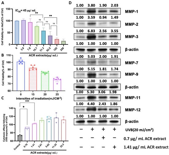 2.1. UV-Protective Effects Mechanism of A. cinnamomea Residue Extracts on HaCaT Cells