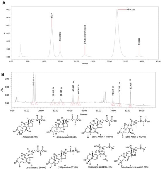- Lee, I.-H.; Huang, R.-L.; Chen, C.-T.; Chen, H.-C.; Hsu, W.-C.; Lu, M.-K. Antrodia camphorata polysaccharides exhibit anti-hepatitis B virus effects. FEMS Microbiol. Lett. 2002, 209, 63–67. [Google Scholar] [CrossRef]