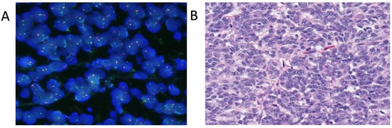 - Stockman, D.L.; Miettinen, M.; Suster, S.; Spagnolo, D.; Dominguez-Malagon, H.; Hornick, J.L.; Adsay, V.; Chou, P.M.; Amanuel, B.; Vantuinen, P.; et al. Malignant gastrointestinal neuroectodermal tumor: Clinicopathologic, immunohistochemical, ultrastructural, and molecular analysis of 16 cases with a reappraisal of clear cell sarcoma-like tumors of the gastrointestinal tract. Am. J. Surg. Pathol. 2012, 36, 857–868. [Google Scholar] [CrossRef]