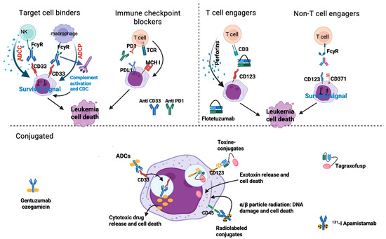 - Slade, M.J.; Uy, G.L. Cd123 bi-specific antibodies in development in aml: What do we know so far? Best Pr. Res. Clin. Haematol. 2020, 33, 101219. [Google Scholar] [CrossRef]