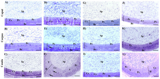 - De Grava Kempinas, W.; Klinefelter, G.R. Interpreting histopathology in the epididymis. Spermatogenesis 2015, 4, e979114. [Google Scholar] [CrossRef] [PubMed]