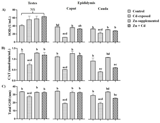 Chicago/Turabian StyleMarín de Jesús, Sergio, Rosa María Vigueras-Villaseñor, Edith Cortés-Barberena, Joel Hernández-Rodríguez, Sonia Guadalupe Pérez-Aguirre, Sergio Montes, Leticia Carrizales-Yáñez, Isabel Arrieta-Cruz, and Marcela Arteaga-Silva. 2025. "Early Zinc Supplementation Enhances Epididymal Sperm Glycosylation, Endocrine Activity, and Antioxidant Activity in Rats Exposed to Cadmium" International Journal of Molecular Sciences 26, no. 10: 4589. https://doi.org/10.3390/ijms26104589