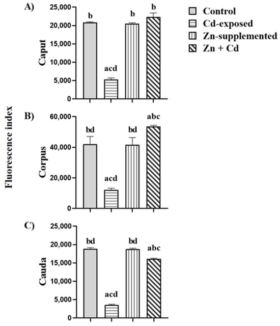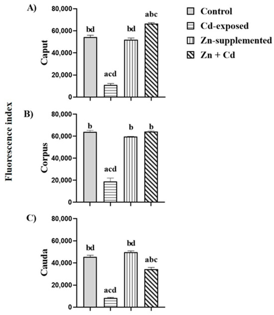 | Control | Cd-Exposed | Zn-Supplemented | Zn + Cd | ||