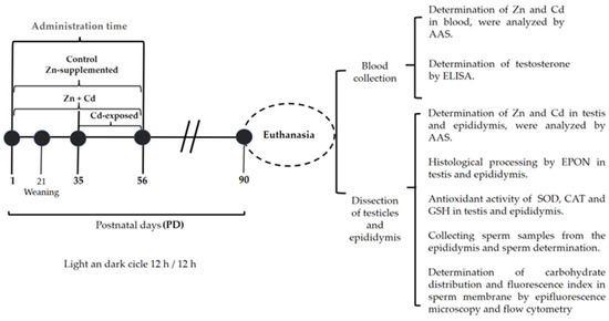 Marín de Jesús S, Vigueras-Villaseñor RM, Cortés-Barberena E, Hernández-Rodríguez J, Pérez-Aguirre SG, Montes S, Carrizales-Yáñez L, Arrieta-Cruz I, Arteaga-Silva M. Early Zinc Supplementation Enhances Epididymal Sperm Glycosylation, Endocrine Activity, and Antioxidant Activity in Rats Exposed to Cadmium. International Journal of Molecular Sciences. 2025; 26(10):4589. https://doi.org/10.3390/ijms26104589