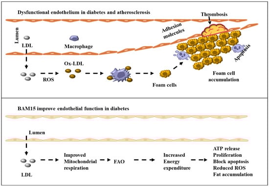 Chicago/Turabian StyleJang, Woong Bi, Vinoth Kumar Rethineswaran, and Sang-Mo Kwon. 2025. "Targeting Mitochondrial Dysfunction to Prevent Endothelial Dysfunction and Atherosclerosis in Diabetes: Focus on the Novel Uncoupler BAM15" International Journal of Molecular Sciences 26, no. 10: 4603. https://doi.org/10.3390/ijms26104603