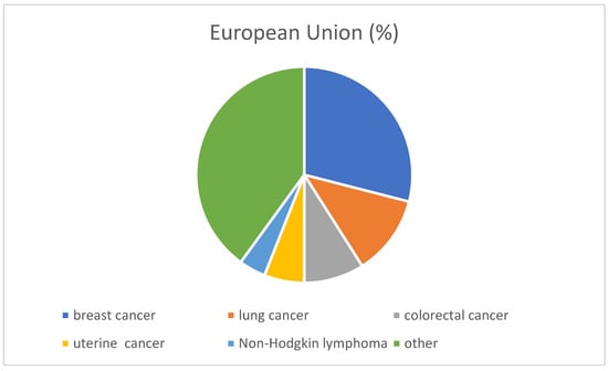- The Organization for Economic Co-Operation and Development. Krajowe profile dotyczące nowotworów: Polska 2023. In EU Country Cancer Profiles; OECD Publishing: Paris, France, 2023. [Google Scholar] [CrossRef]