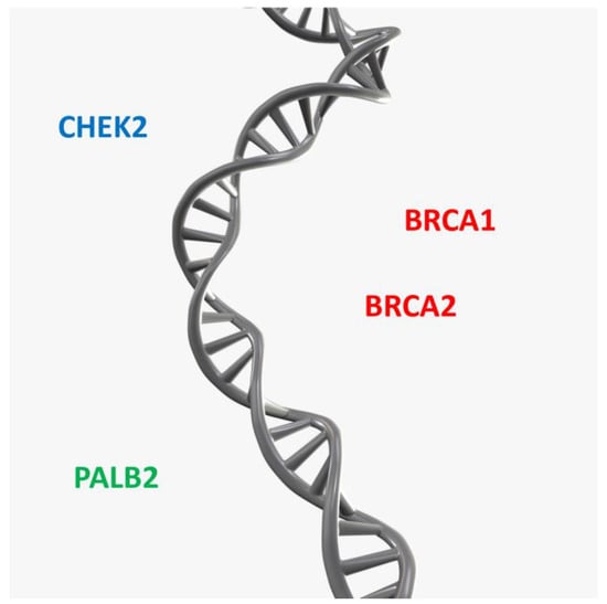 - Doraczyńska-Kowalik, A.; Janus-Szymańska, G.; Matkowski, R.; Gabalewicz, K.; Michałowska, D.; Sąsiadek, M.M. Genetyka i onkologia (część 2.)Podstawy medycyny personalizowanej w leczeniu raka piersi i raka jajnika. Biul. Pol. Tow. Onkol. Nowotw. 2020, 5, 255–272. [Google Scholar] [CrossRef]