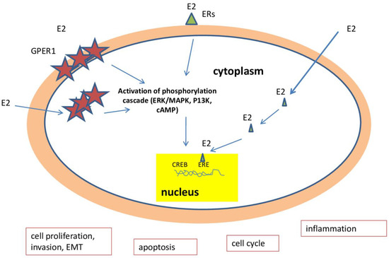 - Yaşar, P.; Ayaz, G.; User, S.D.; Güpür, G.; Muyan, M. Molecular mechanism of estrogen-estrogen receptor signaling. Reprod. Med. Biol. 2016, 16, 4–20. [Google Scholar] [CrossRef]