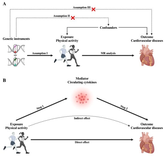 Sun, Y.; Liu, Y. Circulating Cytokines Mediate the Protective Effect of Physical Activity on Cardiovascular Diseases: A Mendelian Randomization Mediation Analysis. Int. J. Mol. Sci. 2025, 26, 4615. https://doi.org/10.3390/ijms26104615