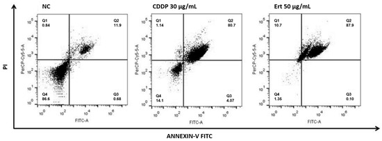 Flow cytometry analysis of SiHa cells treated with Ert (erythraline) for 48 h compared to NC (control) and CCDP (cisplatin).