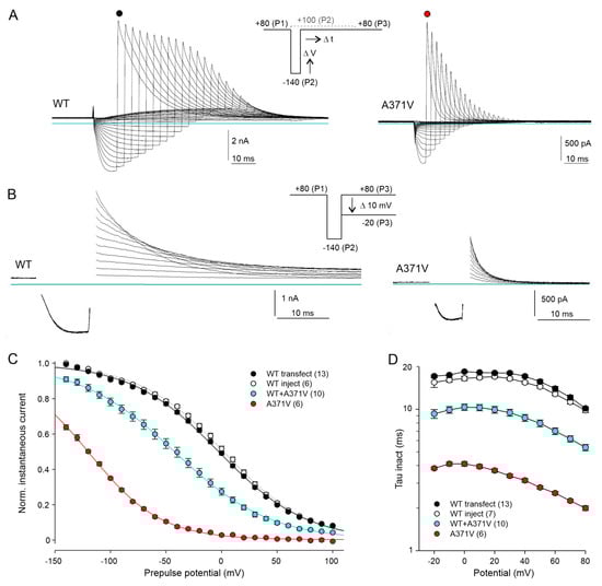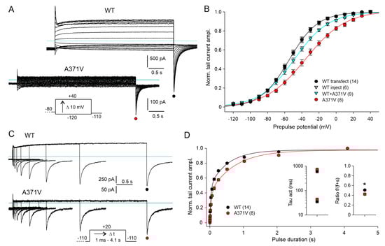2.2.2. Moderate Effects of the A371V Amino Acid Substitution on Channel Activation