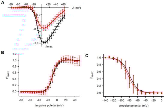 To investigate the voltage dependence of inactivation of Na+ channels, another cyclic pulse protocol was applied consisting of a 140 ms conditioning pulse to −120 mV, followed by a 500 ms prepulse that was varied between −120 and +20 mV in 10 mV steps, and a 40 ms test pulse to −10 mV. Pulses were applied every 2.4 s. To obtain steady state inactivation curves, the peak currents recorded during the test pulses were plotted against the prepulse potential. Manual patch-clamp on HEK 293 cells was performed in the whole-cell configuration using an EPC 10 patch-clamp amplifier (HEKA Elektronik GmbH, Lambrecht, Germany), as recently described []. In the latter case, the preparation of cell suspensions (see above for Nav1.7-expressing cells) was not necessary. Suitable cells were manually picked from the bottom of the culture dishes using regular patch pipettes. All data are expressed as means ± standard deviation (SD).