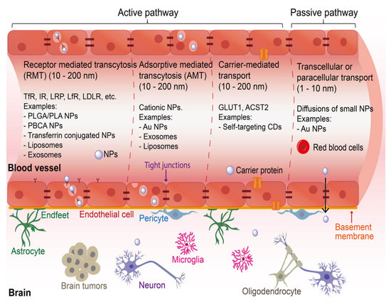 - Moura, R.P.; Martins, C.; Pinto, S.; Sousa, F.; Sarmento, B. Blood-brain barrier receptors and transporters: An insight on their function and how to exploit them through nanotechnology. Expert Opin. Drug Deliv. 2019, 16, 271–285. [Google Scholar] [CrossRef]