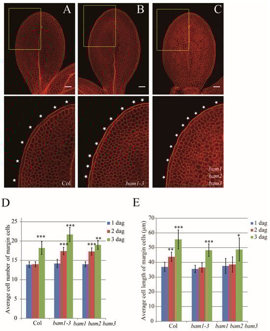 APA StyleJiang, Y., Liang, J., Wang, C., Tan, L., Kawano, Y., & Nagawa, S. (2025). Stem Cell Factors BAM1 and WOX1 Suppressing Longitudinal Cell Division of Margin Cells Evoked by Low-Concentration Auxin in Young Cotyledon of Arabidopsis. International Journal of Molecular Sciences, 26(10), 4724. https://doi.org/10.3390/ijms26104724