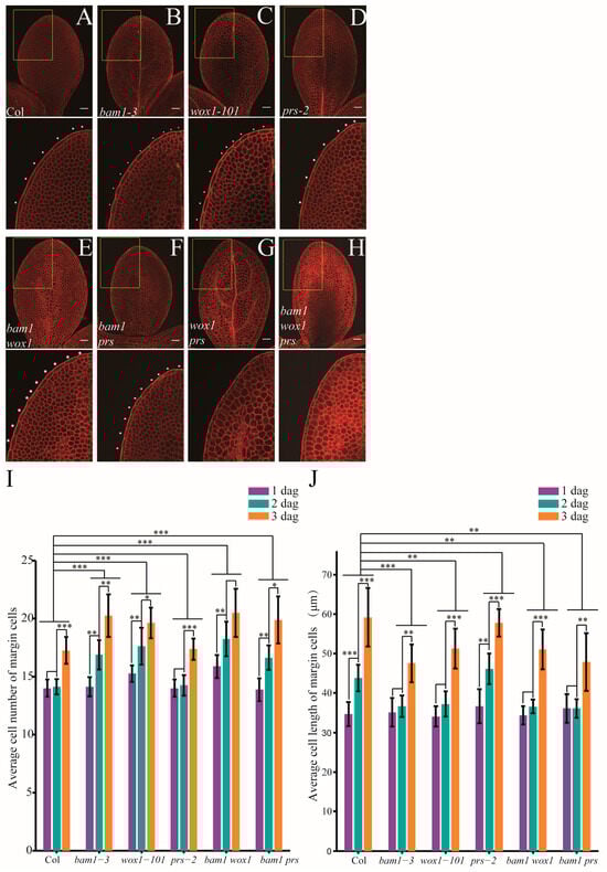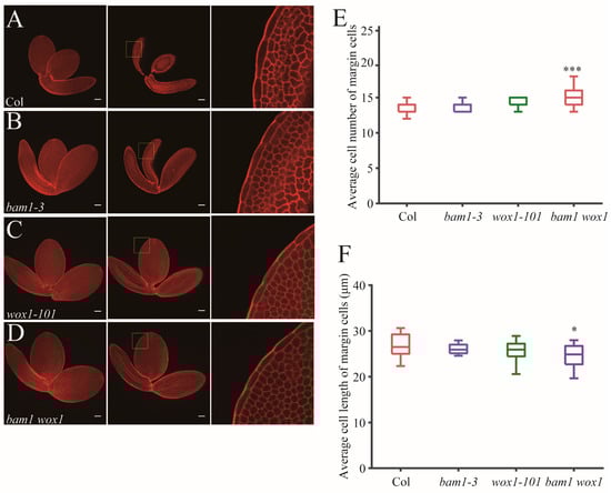 2.4. WOX1 Coordinately Regulates Margin Cell Development with BAM1