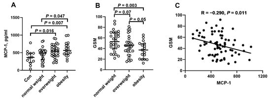 - Kim, C.-S.; Park, H.-S.; Kawada, T.; Kim, J.-H.; Lim, D.; Hubbard, N.E.; Kwon, B.-S.; Erickson, K.L.; Yu, R. Circulating Levels of MCP-1 and IL-8 Are Elevated in Human Obese Subjects and Associated with Obesity-Related Parameters. Int. J. Obes. 2006, 30, 1347–1355. [Google Scholar] [CrossRef]